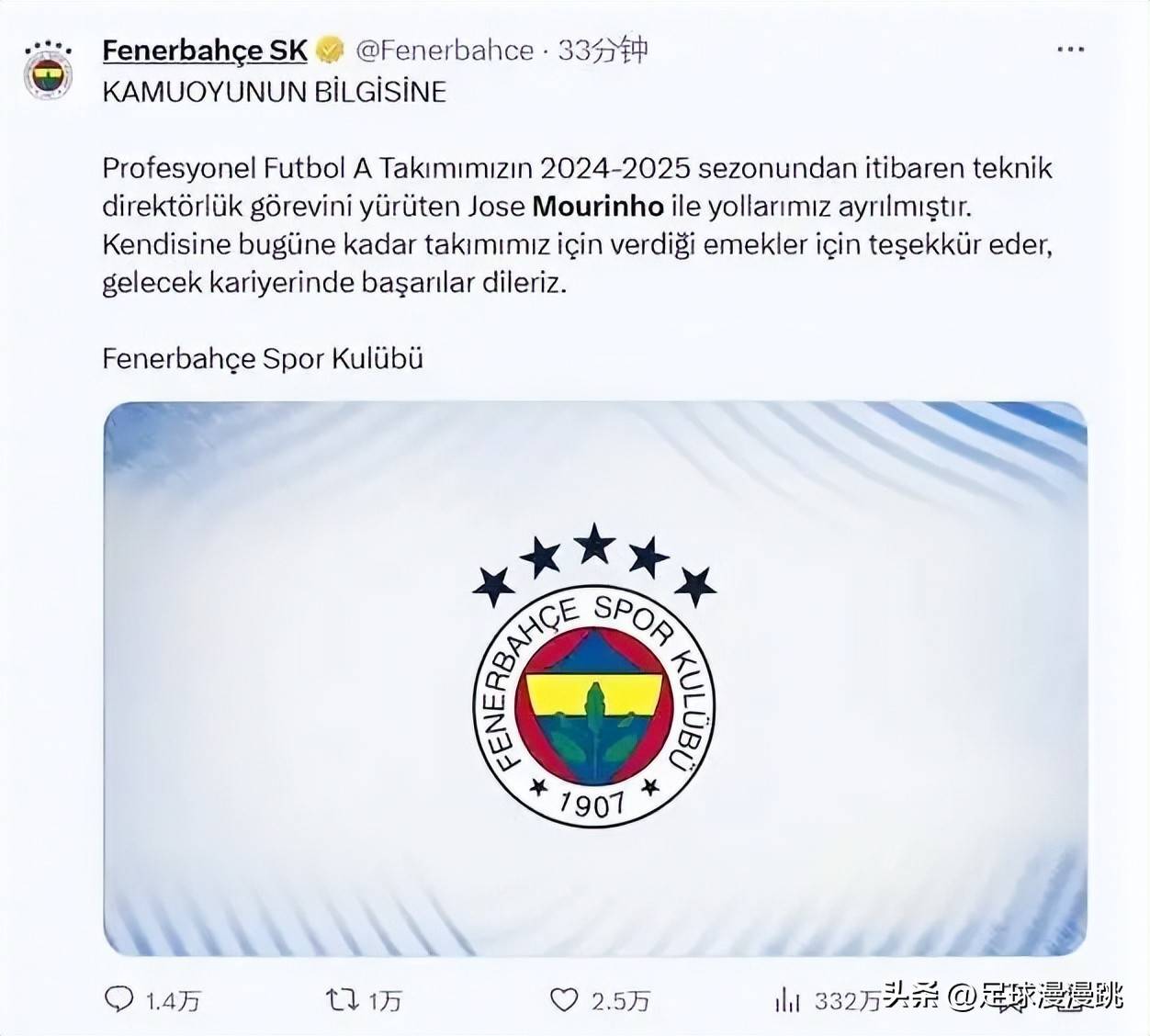 事实上,穆里尼奥仅在费内巴切执教一年便遭解雇。上赛季球队四大皆空,土超冠军竞争中不敌加拉塔萨雷,成为他被清算的理由。尽管狂人的执教锋芒早已不及当年,但费内巴切与加拉塔萨雷之间的差距客观存在,高层的“急切”决定颇显短视。作为流量王,穆帅的未来动向自然成为焦点,不少曼联球迷甚至调侃:“穆里尼奥要不要再回曼联?最好把索尔斯克亚也带回来。”